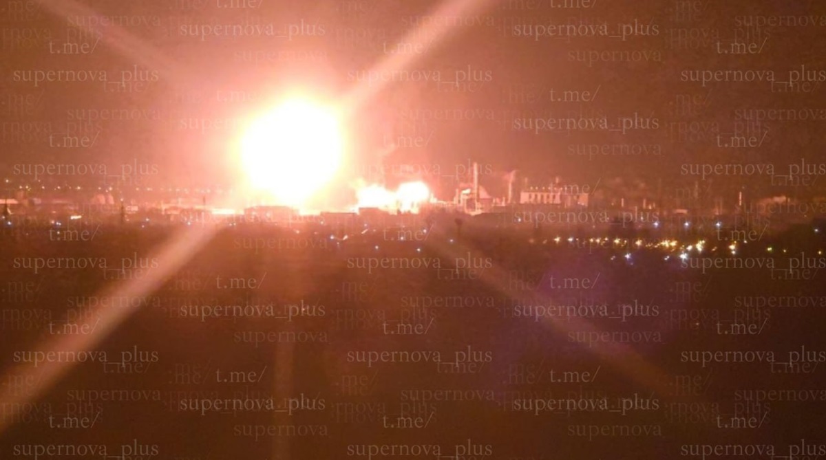 Місцеві жителі охоче діляться кадрами пожежі. Автор одного з відео повідомляє, що в завод влучило сім дронів.